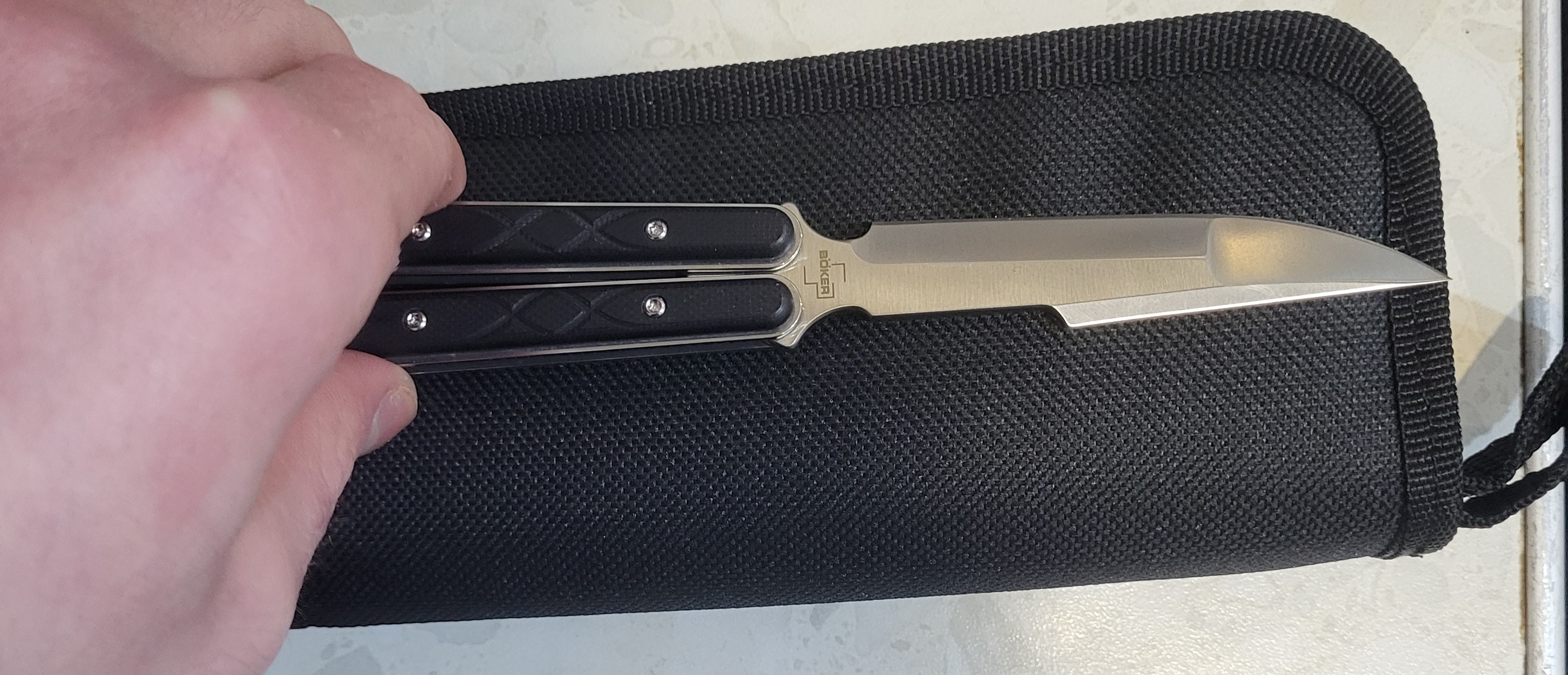 Нож Balisong Tactical не только отлично справляется с повседневными задачами, его также можно использовать для тренировки рук и в целях самообороны. Клинок обладает отличными проникающими свойствами благодаря острому кончик с примыкающим фальшлезвием. На конце рукояти имеются выступы, к которым крепятся половинки рукояти. Они также играют роль упоров, препятствуя соскальзыванию пальцев на клинок.