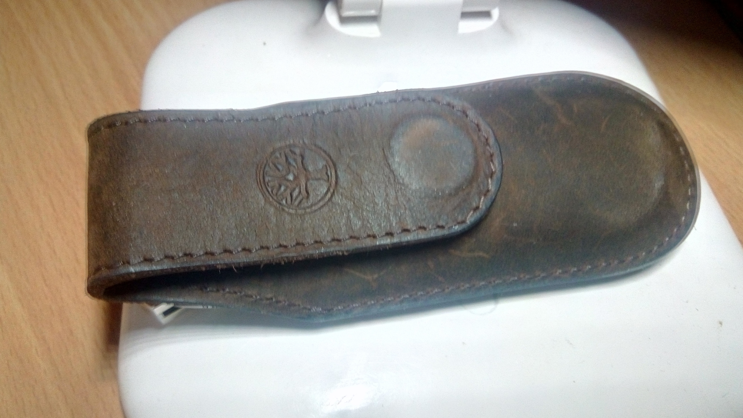 Удобные ножны, изготовленные из кожи. Чехол предназначен для складных ножей. Имеет магнитную застёжку с логотипом компании.