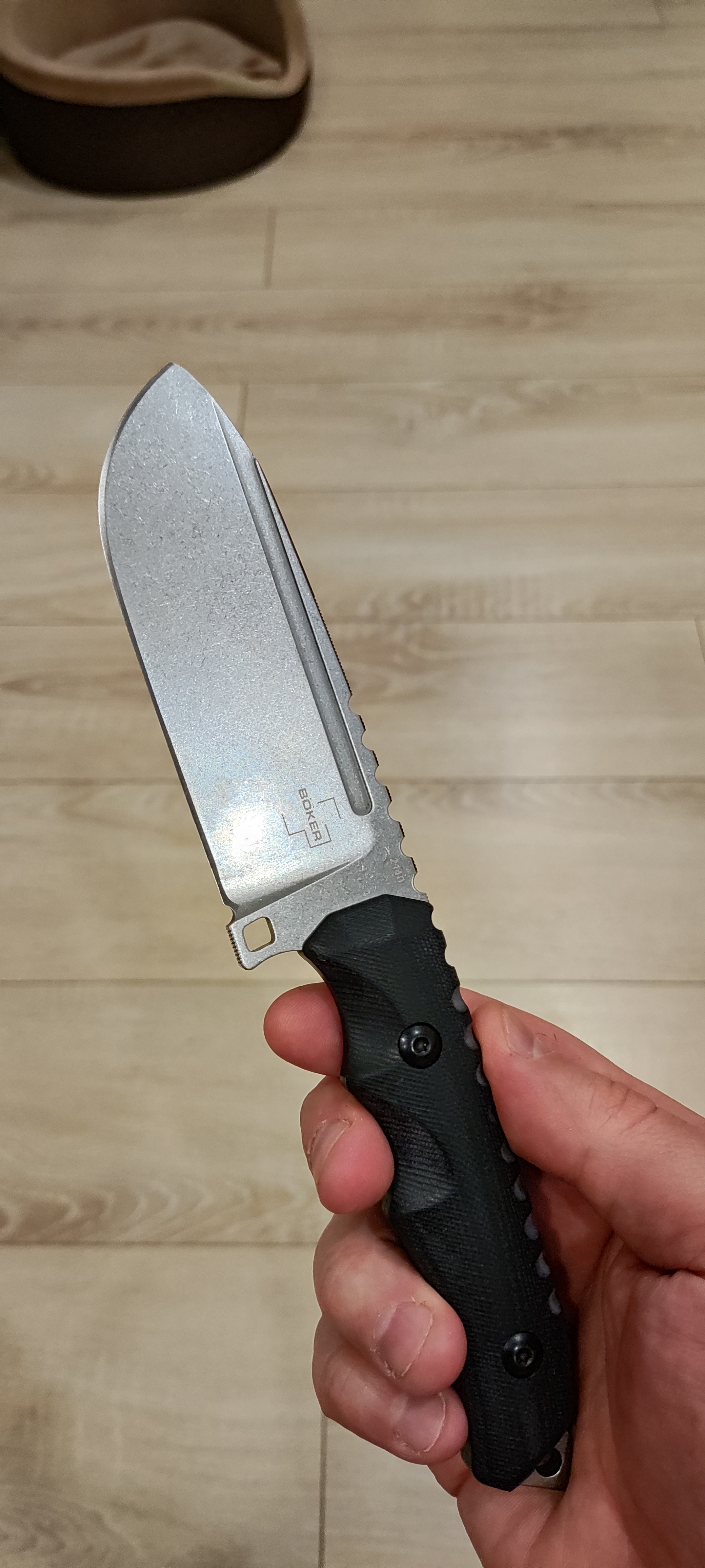 Boker Plus Hermod 2.0. Полевой нож Boker Plus Hermod 2.0 разработан совместно с немецким ножевым мастером Дирком Гофмейстером. Нож позиционируется как основной походный нож. Хвостовик клинка проходит по всей длине рукояти. Рукоять ножа эргономичной формы. Хорошо лежит в руке и обеспечивает уверенный и надежный хват, даже в холодную погоду или в перчатках.
